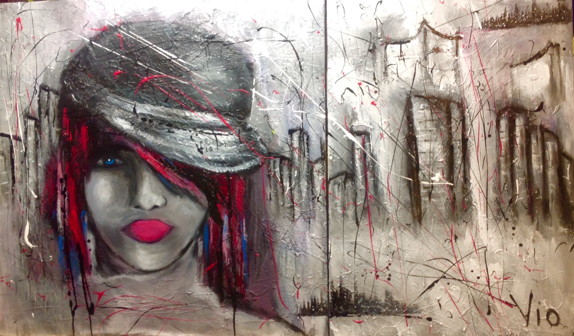 image Published on 18 août 2016 in Œuvres (abstrait et fleurs)Pleine résolution (2251 × 1319) ← Précédent Suivant → Arrive en ville! Technique mixte Dimension: 60″x36″ 450$